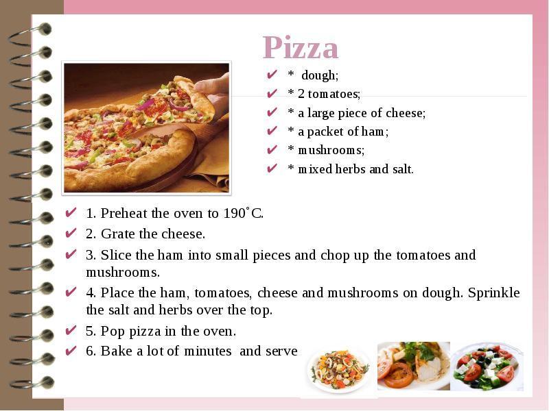 Пизза, доут, томейтос э лардж пиеслф чисс э пэкет оф хам машрумс миксед хербсэнд сели прихея все овен то 190 Грейт все чисс извини надо уроки делать полностью не успею
