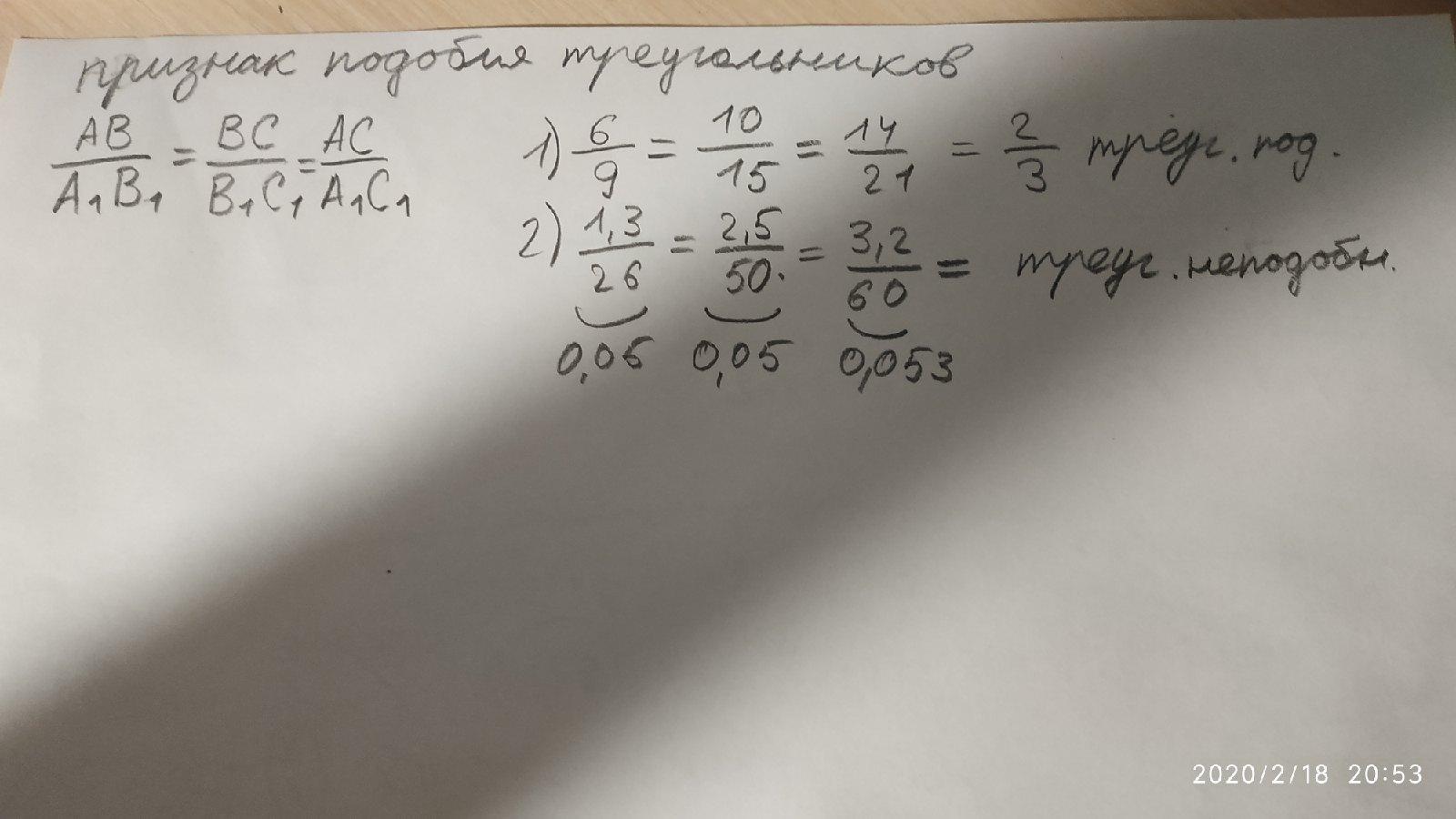 2)АВ=1,3см, ВС=2,5см,АС=3,2см,А1В1=26см,В1С1=50см,А1С1=60см?
