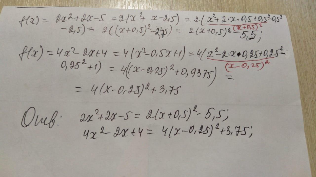 Выделите квадрат двучлена для функции f(x)