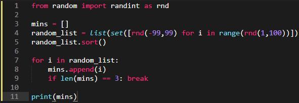 Найдите за один проход по массиву три его различных элемента, которые меньше всех остальных («три минимума»). НА ПИТОНЕ