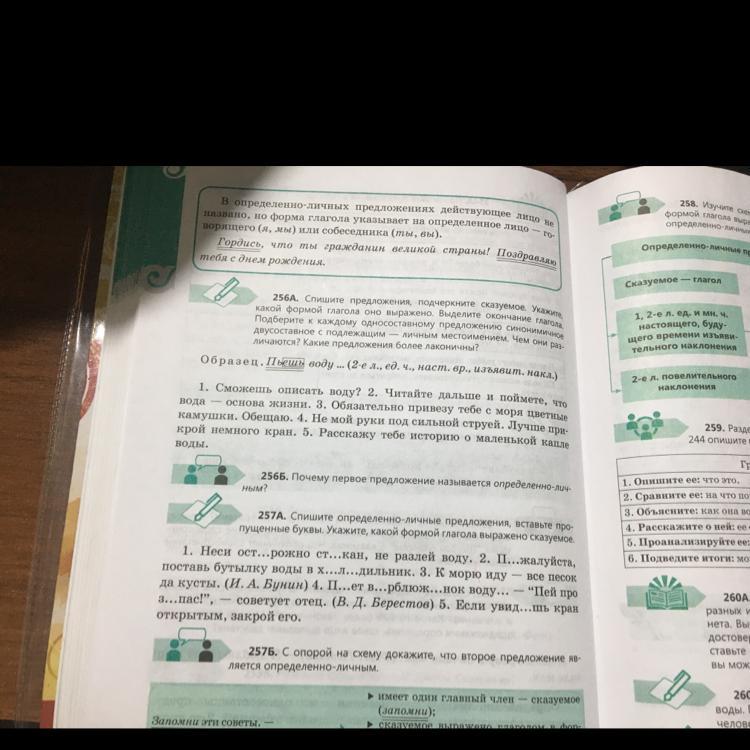 Спишите определенно -личные предложения, вставьте пропущенные буквы. Укажите, какой формой глагола выражено сказуемое. (257(а) )