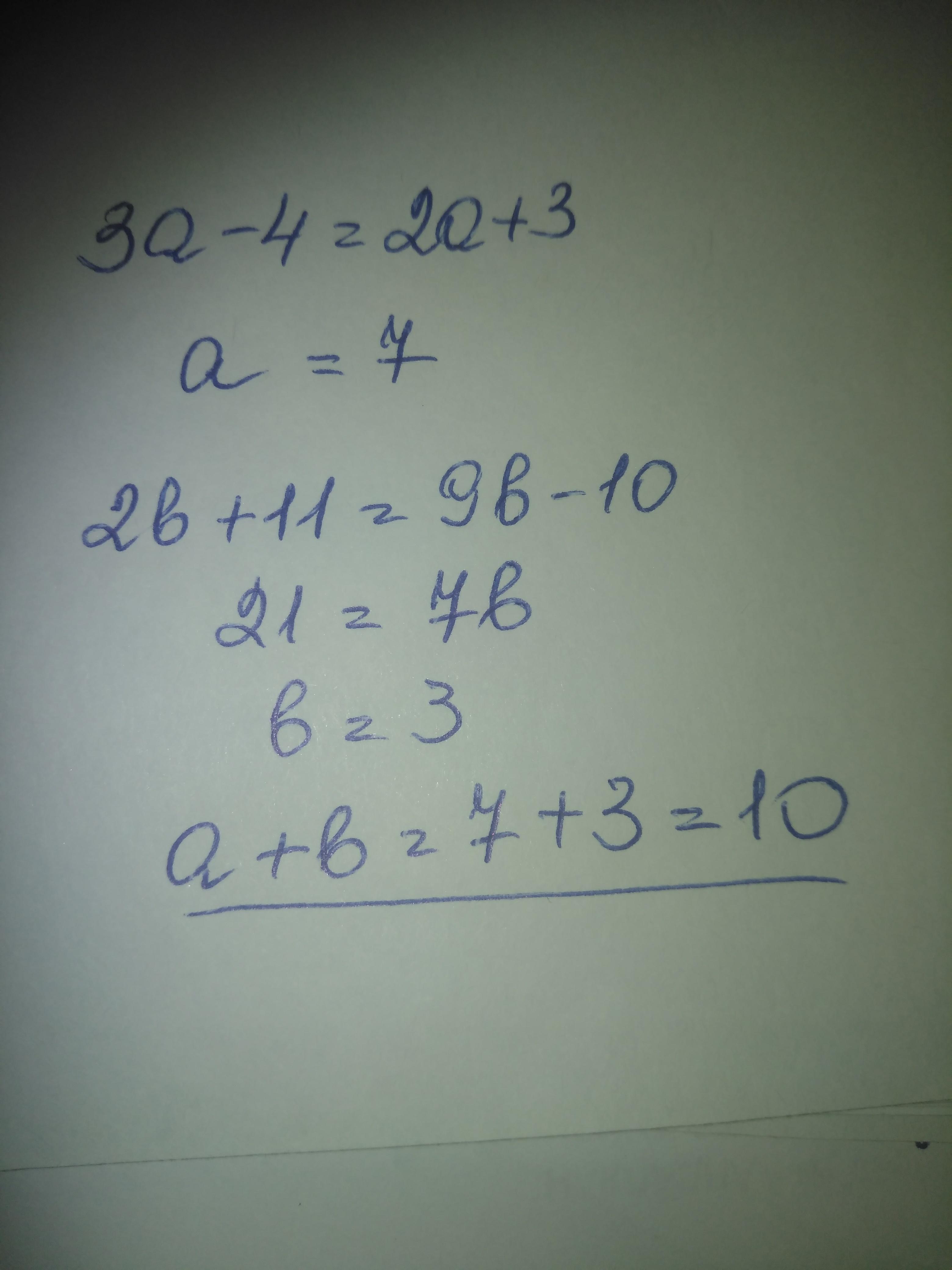 3а - 4= 2b + 11