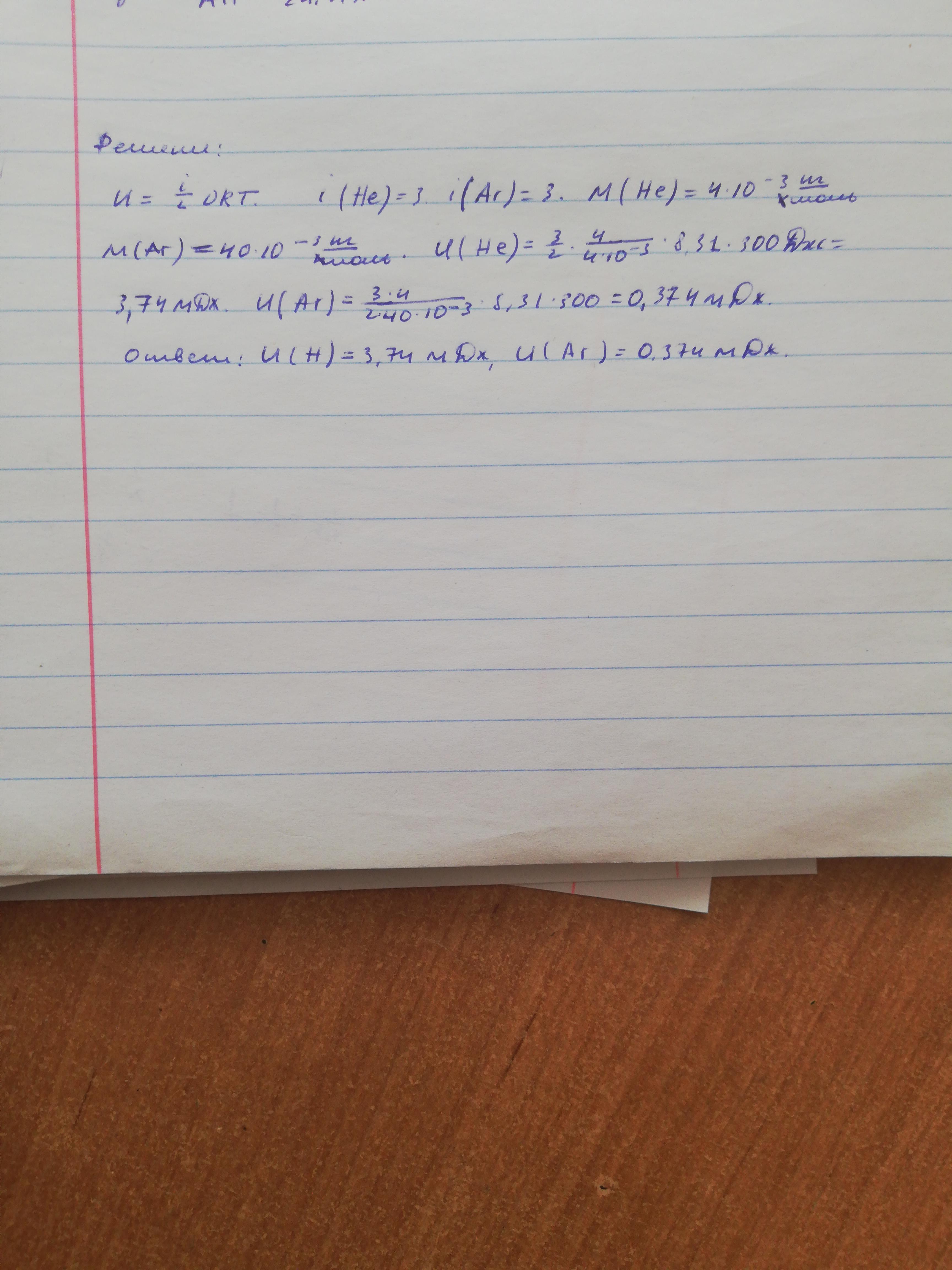 Вычислите внутренние энергии аргона и гелия при температуре 300 К. Массы газов одинаковы и равны 4 кг.