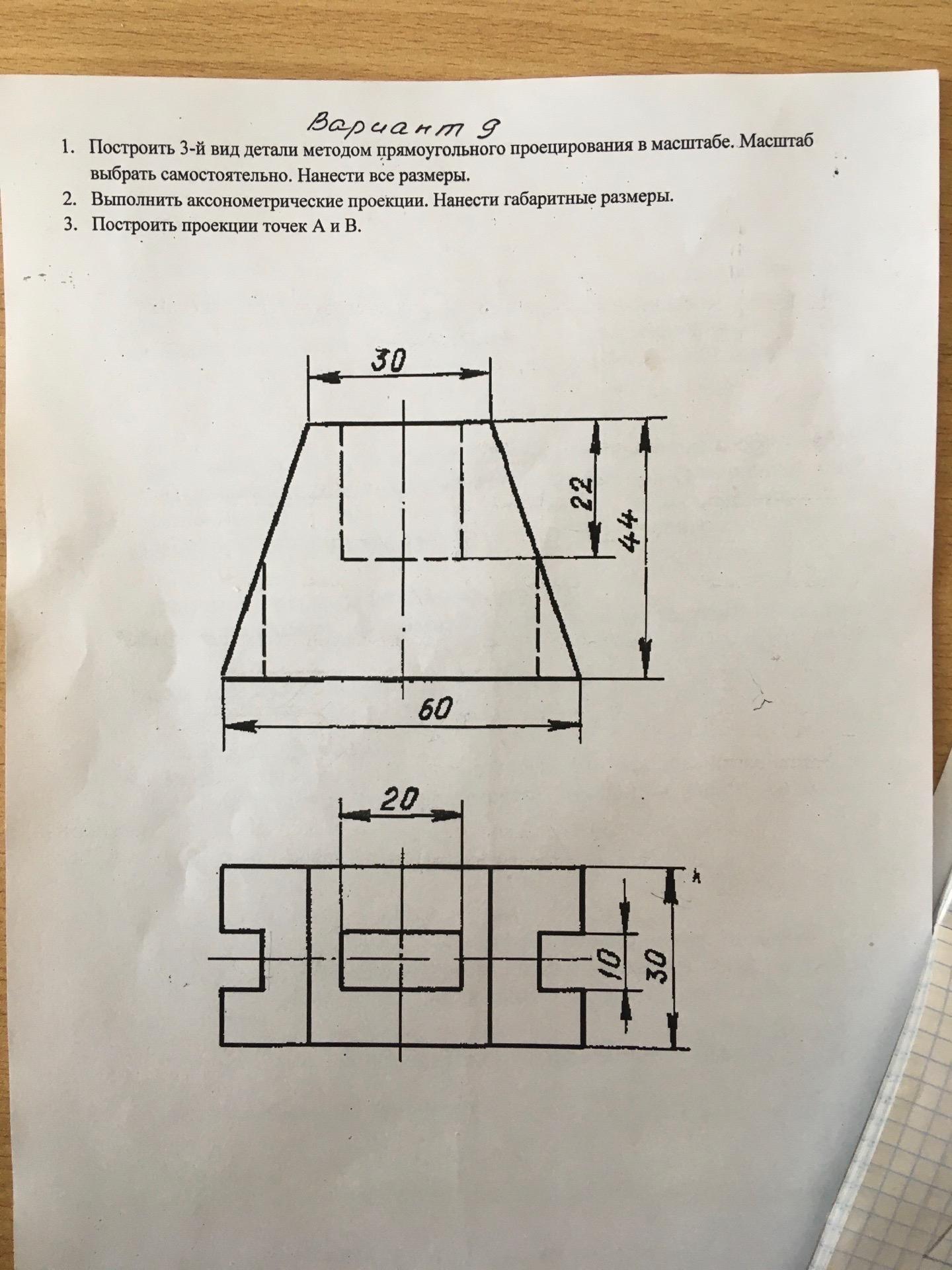 На главном виде сделала местный разрез, т.к. размеры по невидимым линиям на чертеже не указывают.