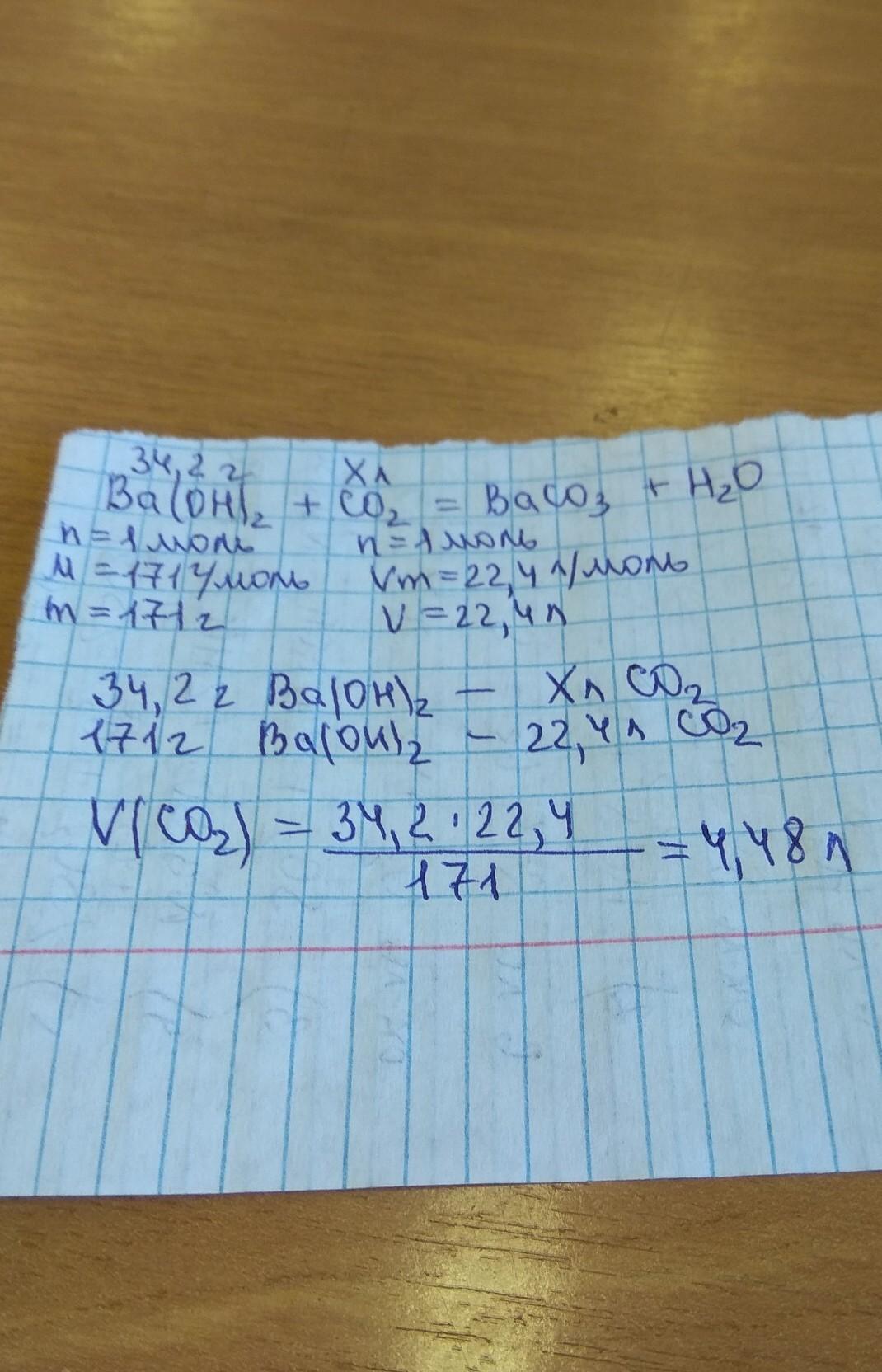 Обчисліть об'єм вуглекислого газу що поглинається розчин барій гідроксиду масою 34,2 грам