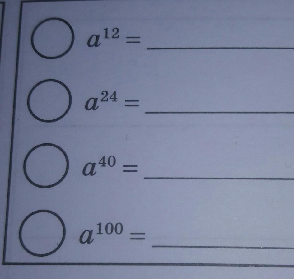 { ({a}^{2} )}^{6}  \ { ({a}^{2} )}^{12 }  \  { ({a}^{2} )}^{20}  \  { ({a}^{2} )}^{50}