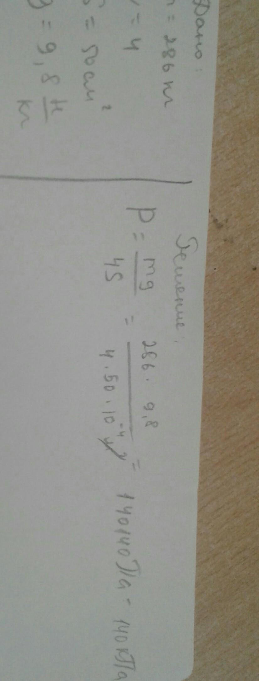 Фрезерный станок массой 286 кг установлен на 4 опорах, средняя площадь каждой из которых равна 50 см2.