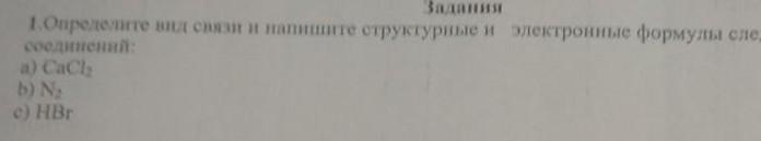 Определите вид связи и напишите структурные и электронные формулы следующих соединений: