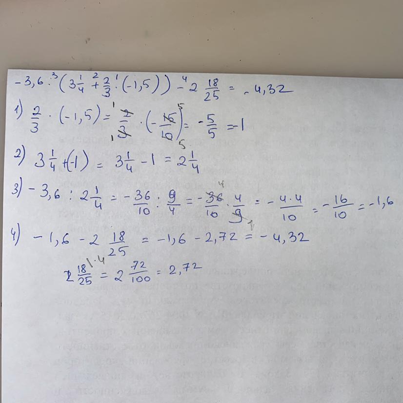 3)-3.6:3 1/4=-3 3/5:3 1/4=-1 3/5•4/1=-1 12/5