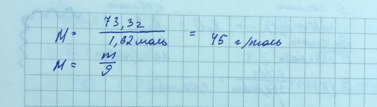 Рассчитайте молярную массу вещества, если известно, что количество вещества составляет 1,62 моль, а масса вещества составляет 73,3 г.