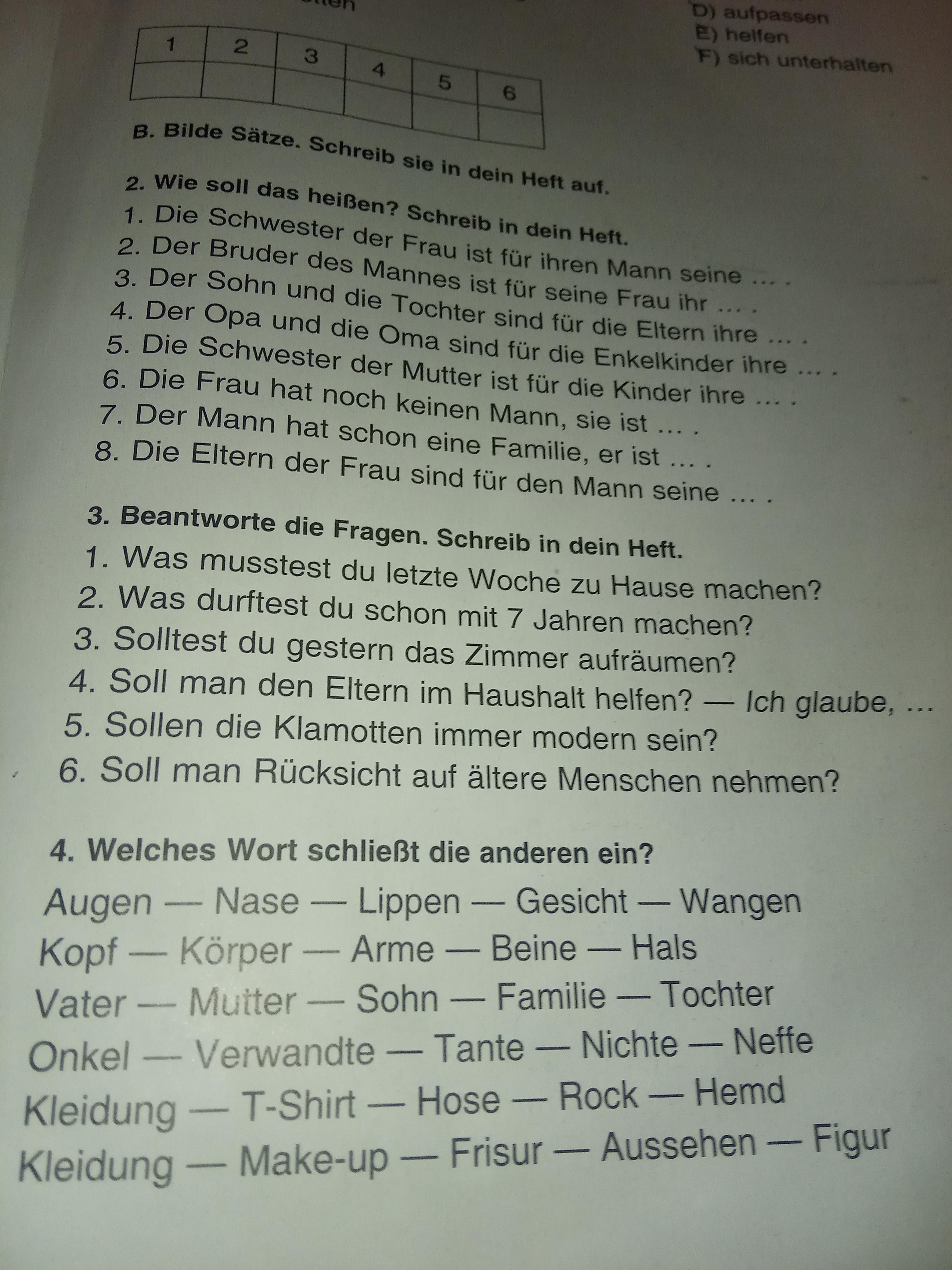 1. Letzte Woche musste ich zu Hause mein Zimmer in Ordnung bringen, den Fußboden wischen und Wäsche waschen.