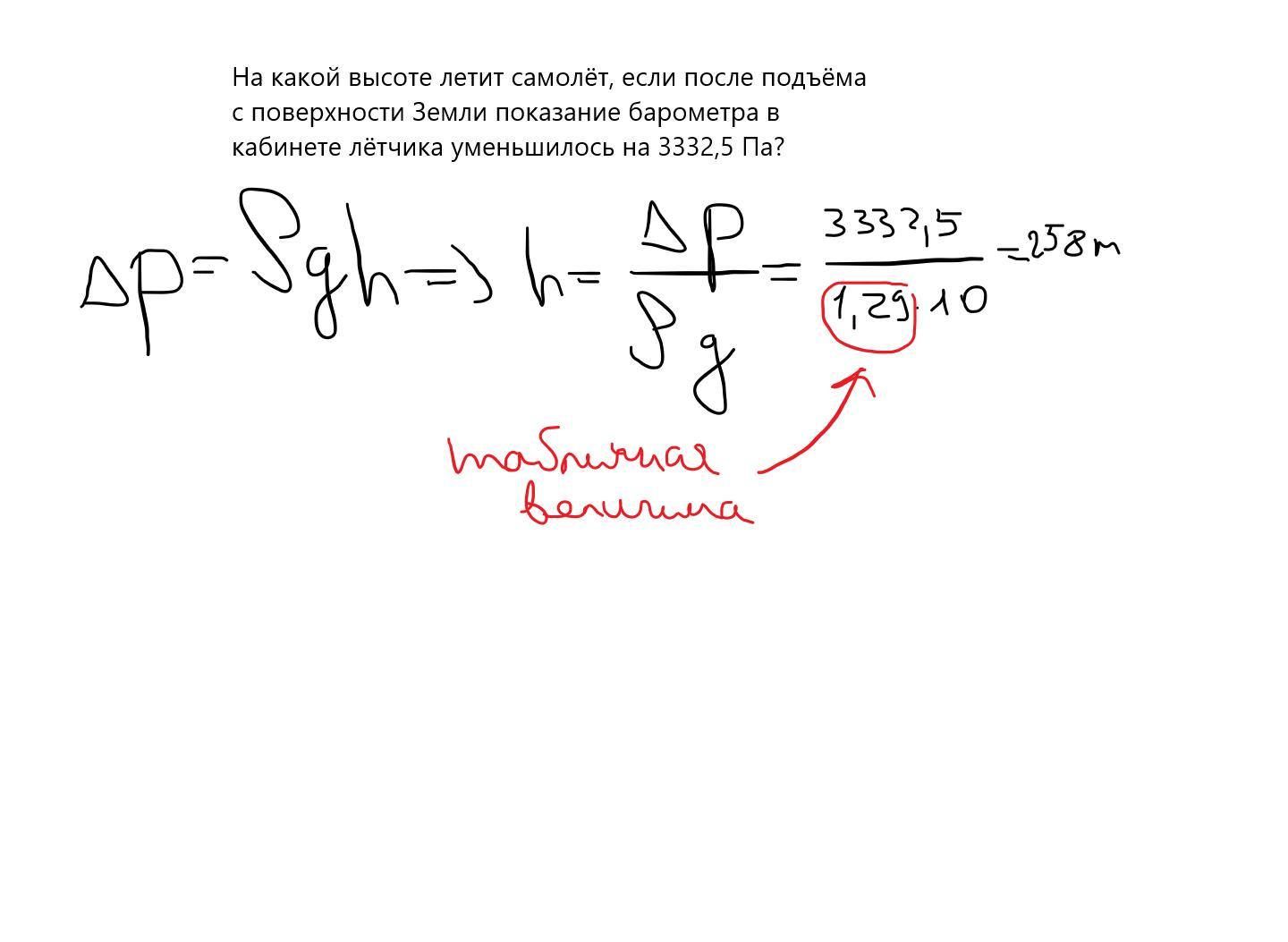 На какой высоте летит самолёт, если после подъёма с поверхности Земли показание барометра в кабинете лётчика уменьшилось на 3332,5 Па?