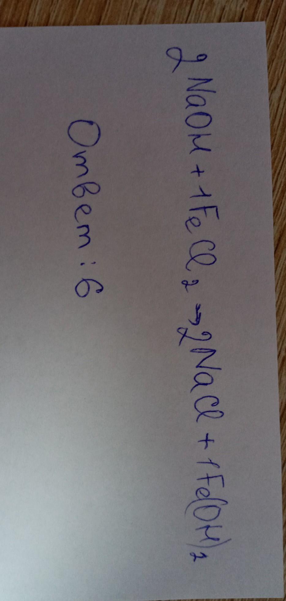 2NaOH + 1FeCl2 = 2NaCl + 1Fe(OH)2