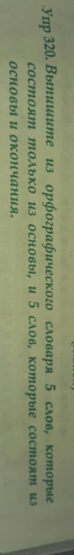 20 Выпишите из орфографического словаря пять слов которые состоят только из основы и 5 слов которые состоят из основы и окончания