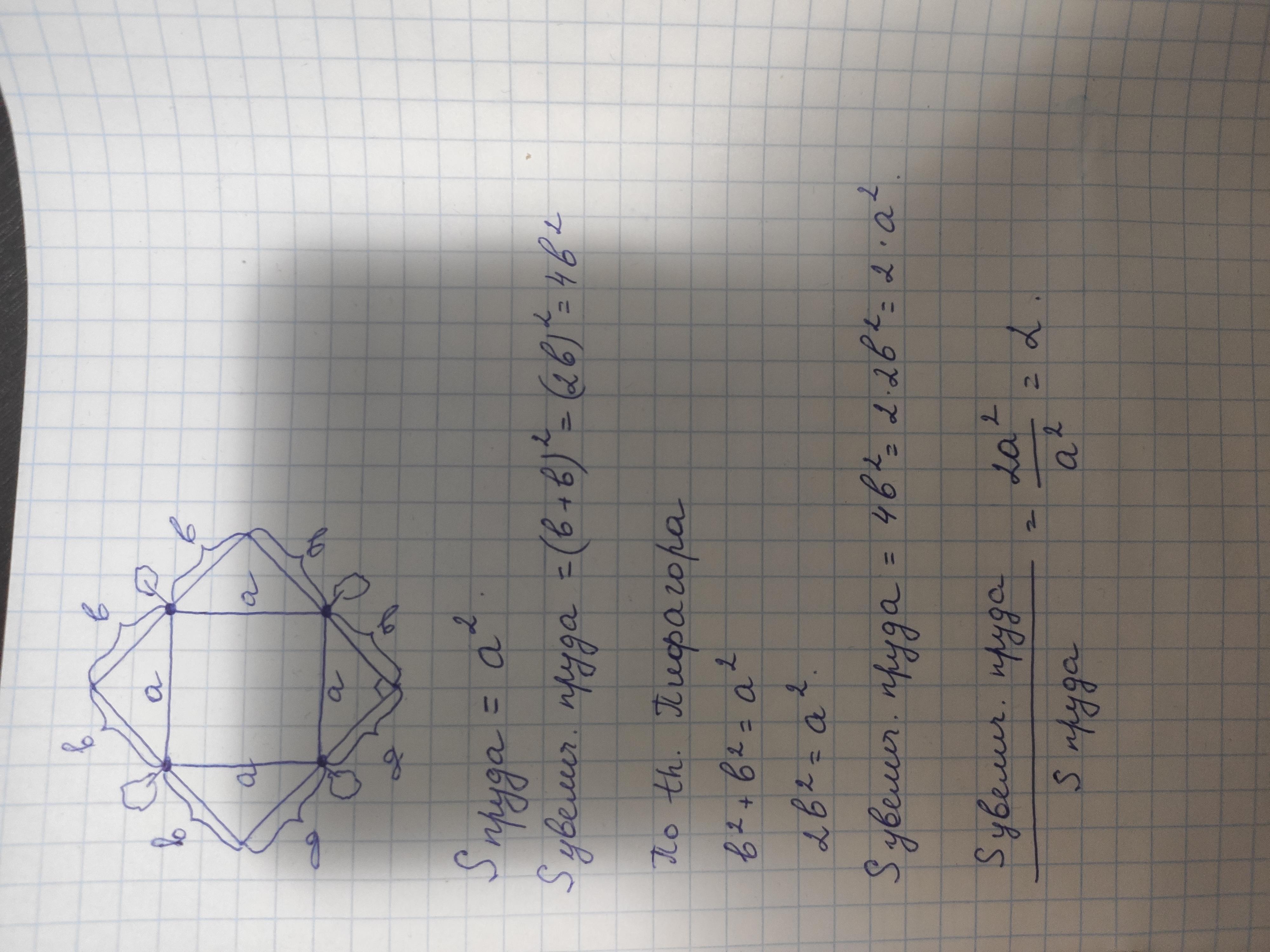 на участке загородного дома имеется пруд квадратной формы по углам которого растут четыре японские ивы. хозяину захотелось увеличить вдвое площадь этого пруда сохранив его квадратную форму и не повредив ивы.укажите как это сделать.о ответ обоснуйте.