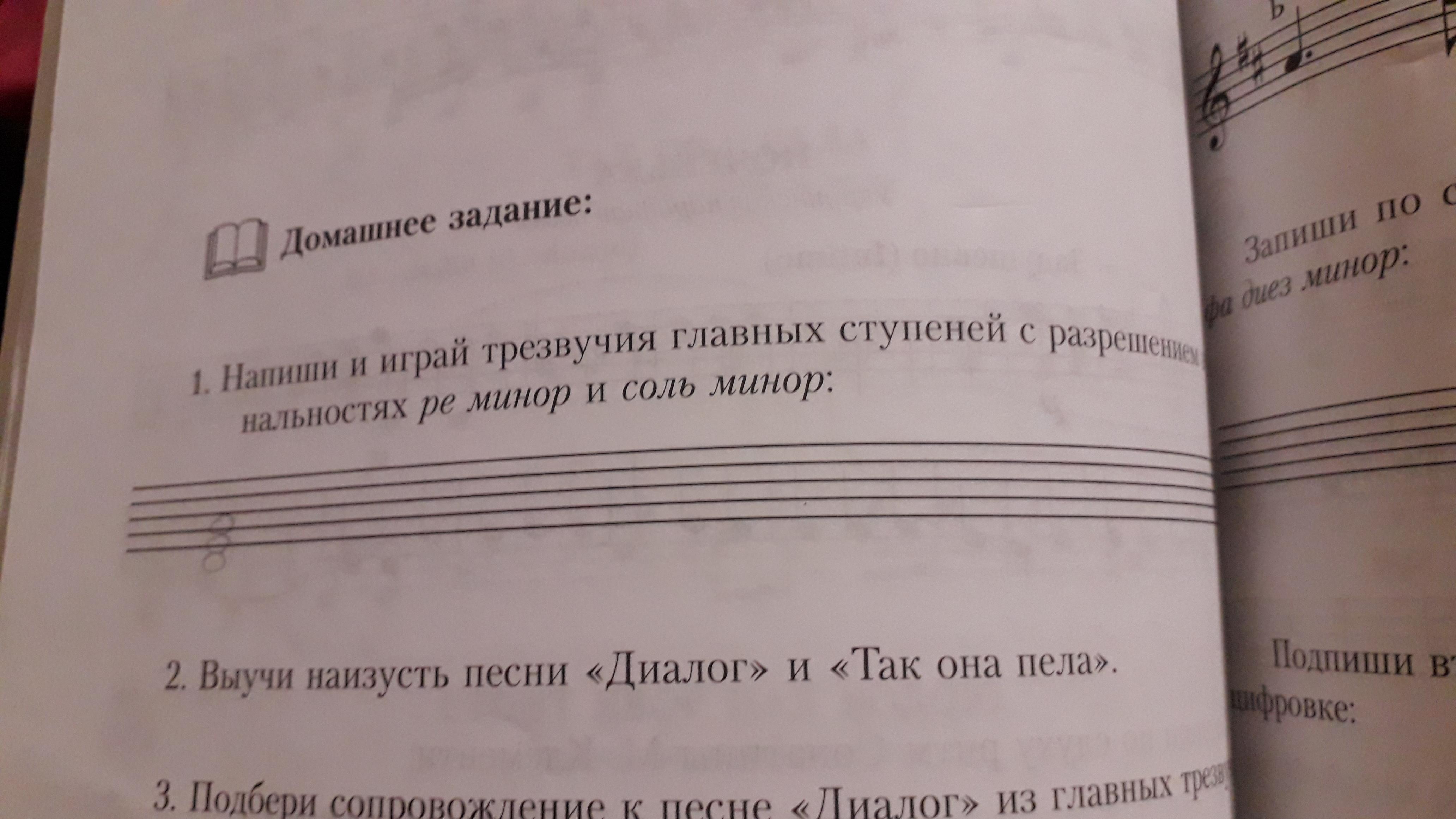 Напиши и играй трезвучия главных ступеней с разришением в тональнастях ре минор и соль минор