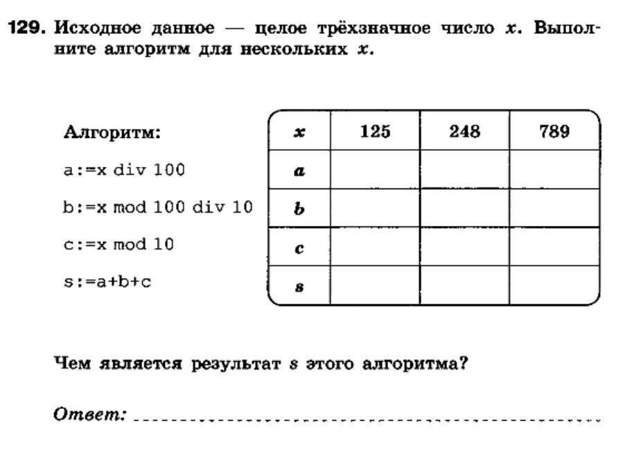 1) x = 125: a = 1; b = 2; c = 5; s = 8