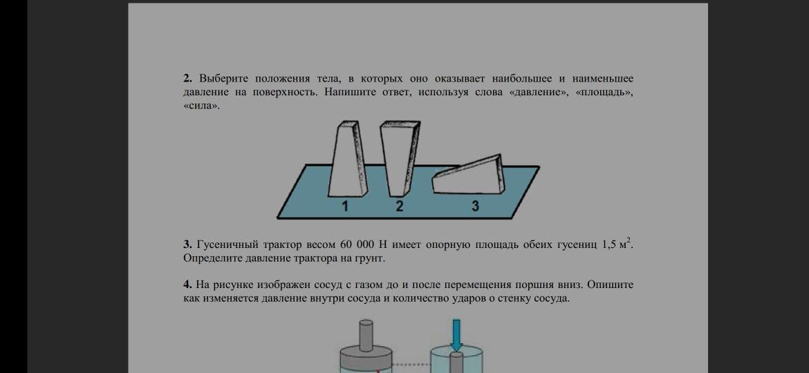 Так как под цифрой 2 площадь оказываемого давления меньше, чем у остальных тел, соответственно сама сила давления будет больше.