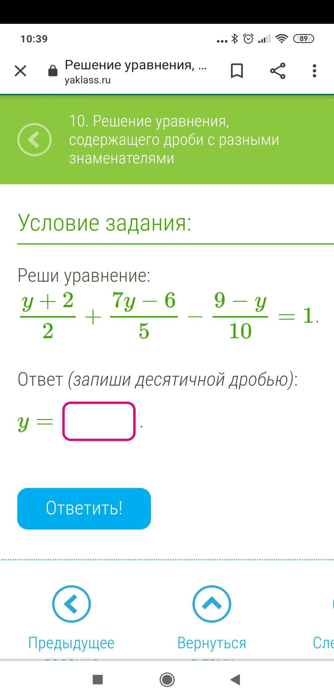 (y+2)/2+(7y-6)/5-(9-y)/10=1 |×10