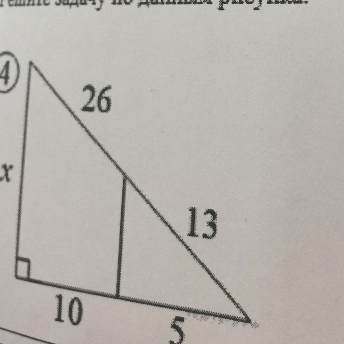 Треугольник прямоугольный. Гипотенуза: 26+13=39