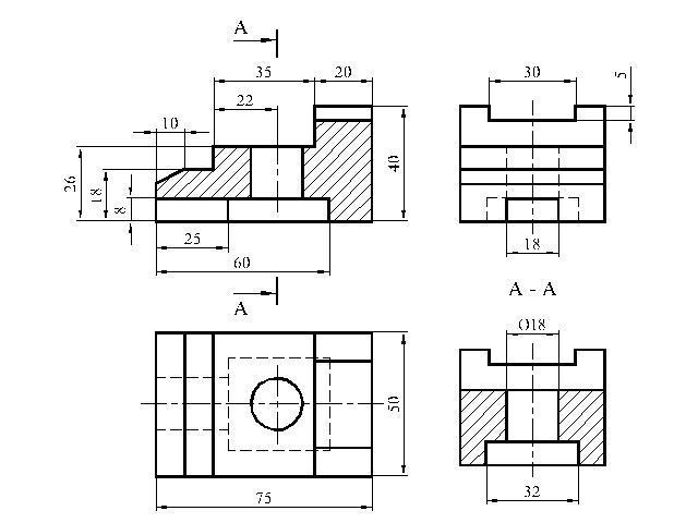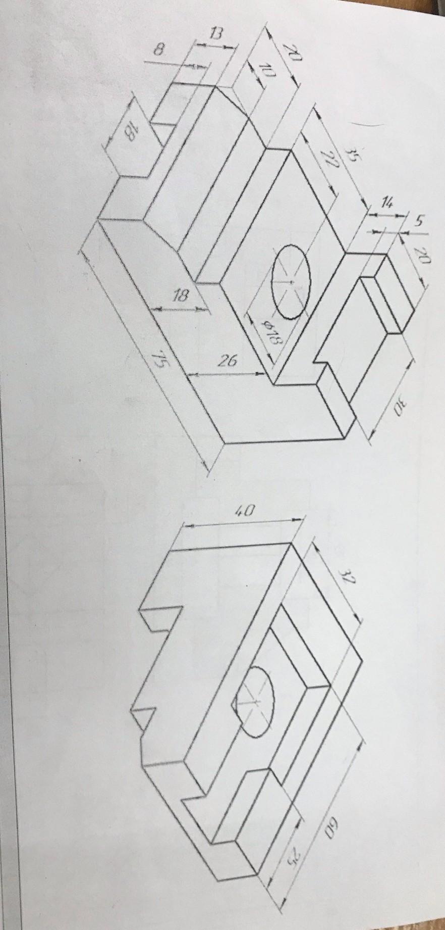 По аксонометрическому чертежу выполните чертеж детали в необходимом количестве видов, постройте целесообразный разрей . На чертеже нанесите размеры