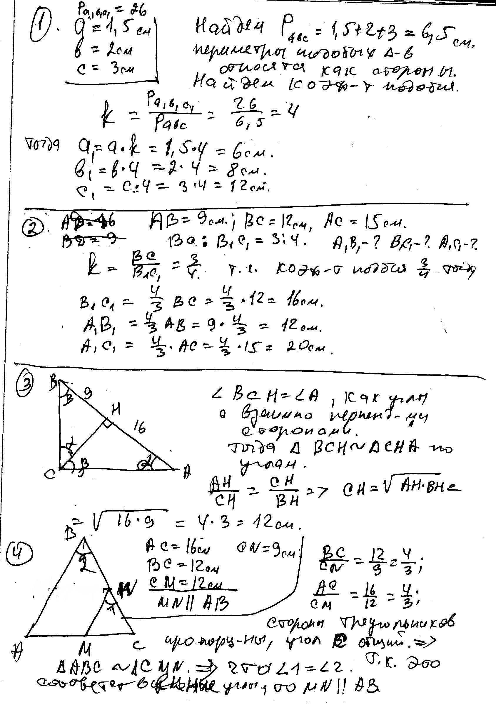 стороны данного треугольника- 1,5 см, 2 см и 3 см. найдите стороны треугольника, подобного данному, если его периметр равен 26 см. помогите