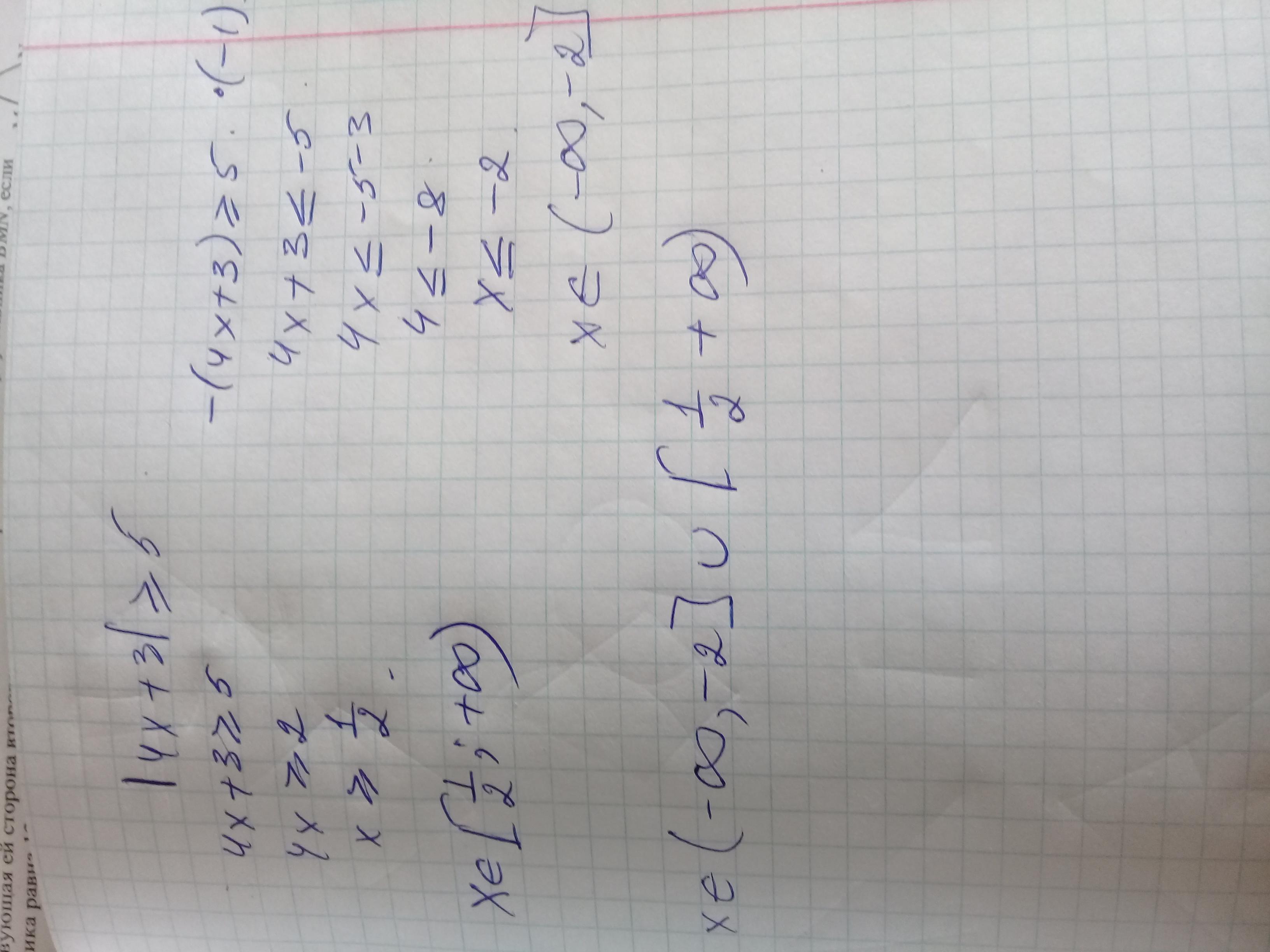 [-(4x+3)≥5 |×(-1) [4x+3≤-5 [4x≤-8 |÷4 [x≤-2 ⇒