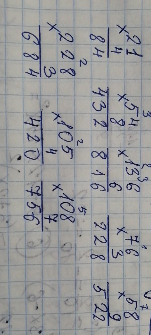 21•4=84. 136•6=816. 58•9=522. 105•420
