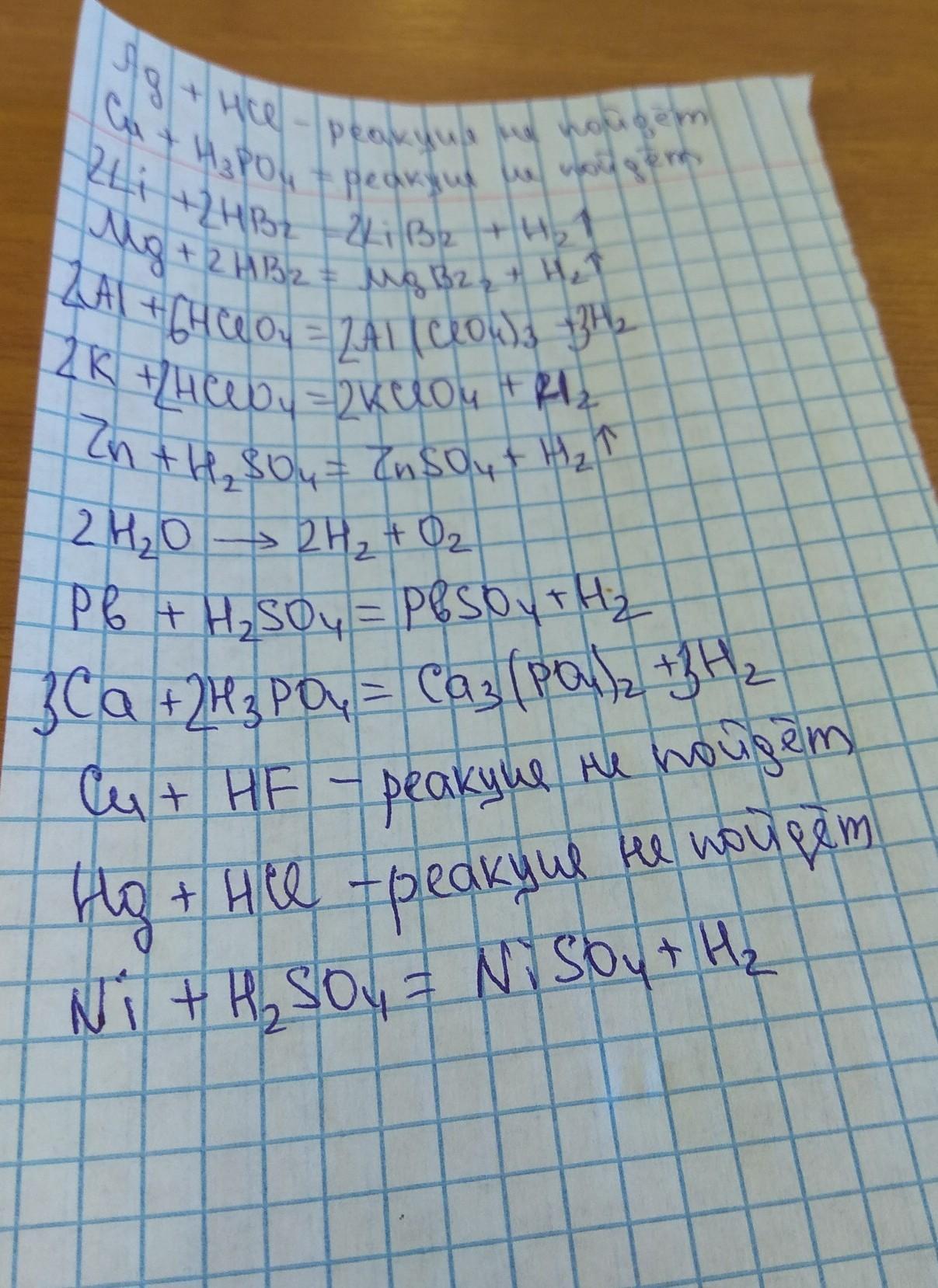 Закончи уравнения возможных реакций получения водорода, укажи тип химической реакции:
