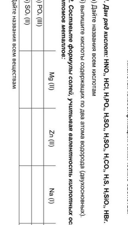 составьте формулу солей,учитывая валентность кислотных остатков и атомов металлов.