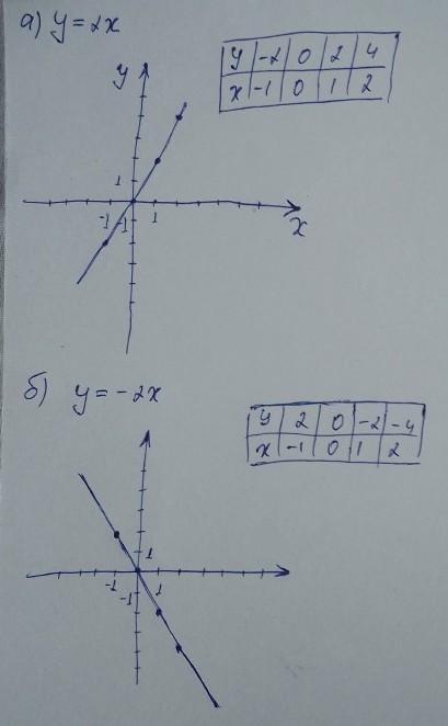 Я считаю, что график а (у=2х) показан на 3 рисунке, а график б (у=-2х) – на 2.