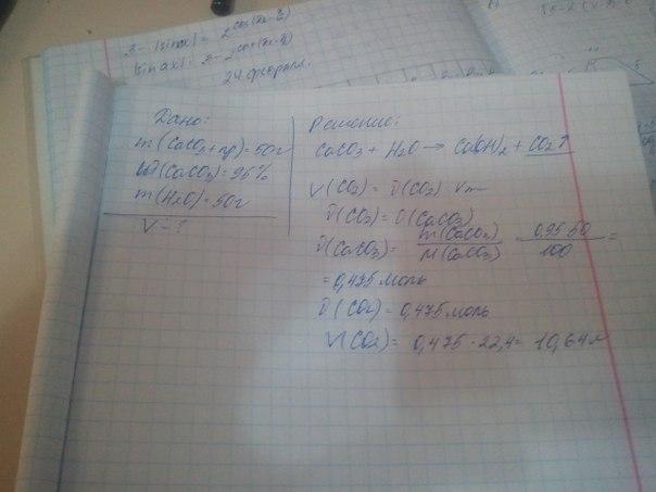 Найдите объем газа (н.у.), который образуется при взаимодействии 50 г карбида кальция, содержащего 5% примесей и 50 г воды.