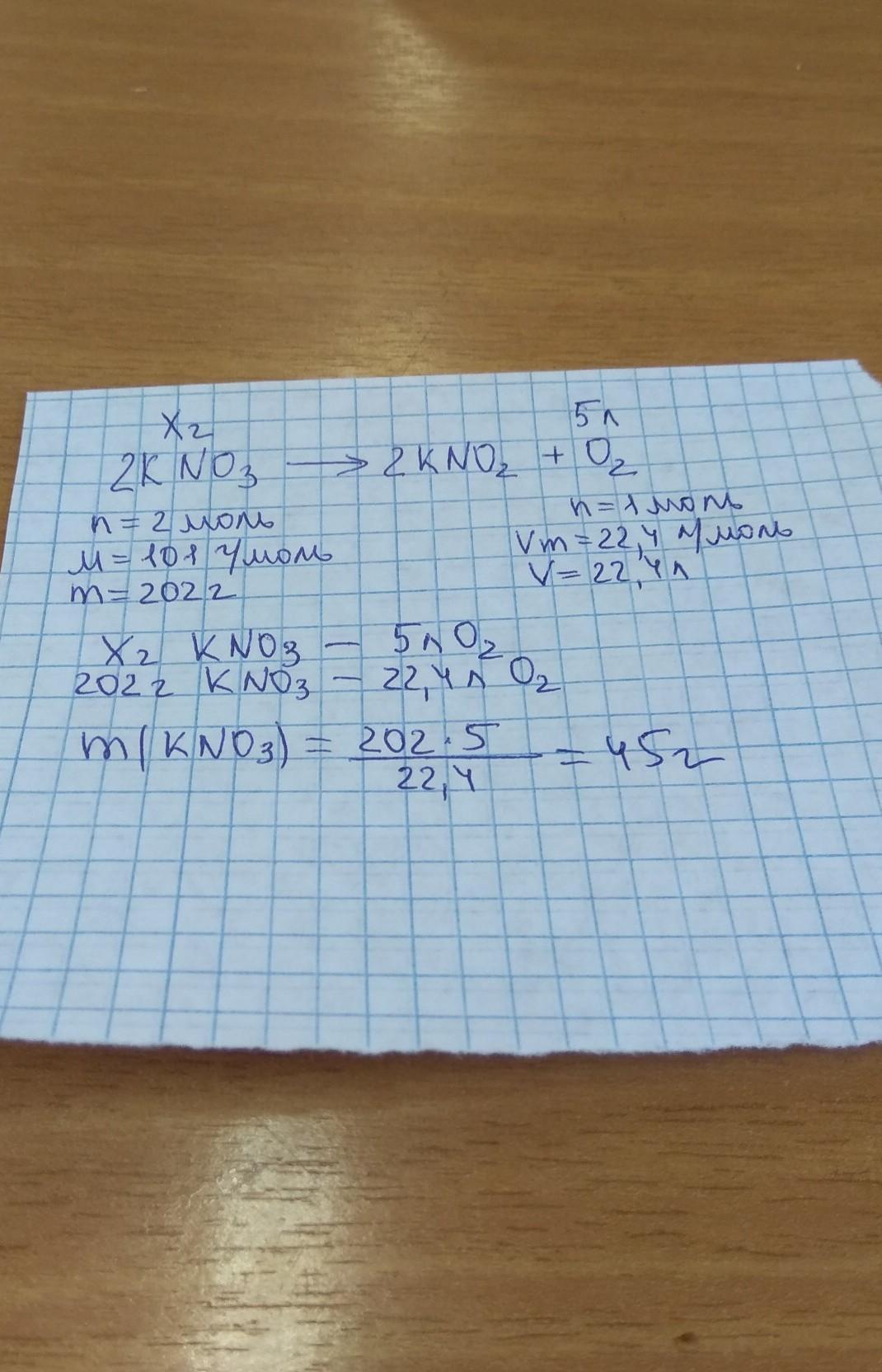 какую массу селитры KNO3 необходимо разложить, чтобы заполнить емкость объемом 5 л кислородом?