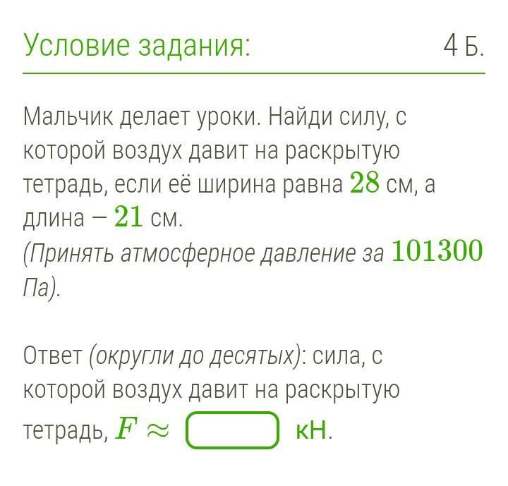 Ответ:S(тетради)=0,28м•0,21м=0,0588м^