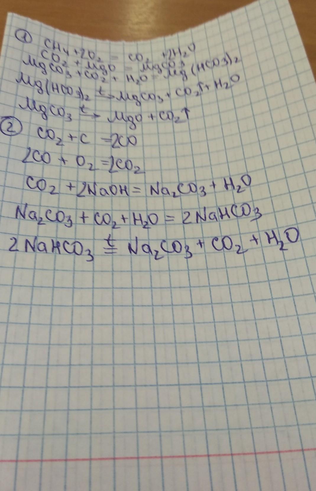 CH4 → CO2 → MgCO3 → Mg(HCO3)2 → MgCO3 → MgO