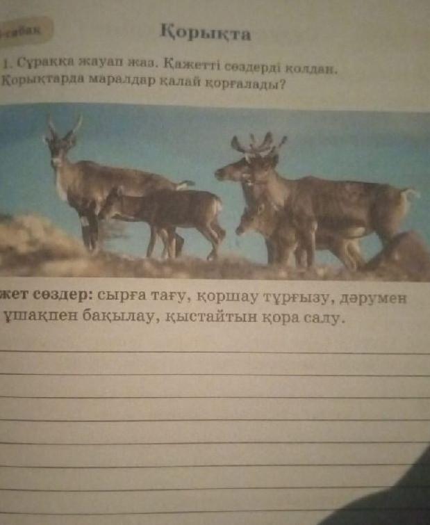 Сүракка жауап жаа. Қажетті сөздерді қолдан. Қорықтарда маралдар қалай қорғалады?