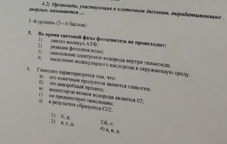 Ответ: 4.2- митохондрия. 5- 3 (накопление электронов водорода внутри тилакоида)