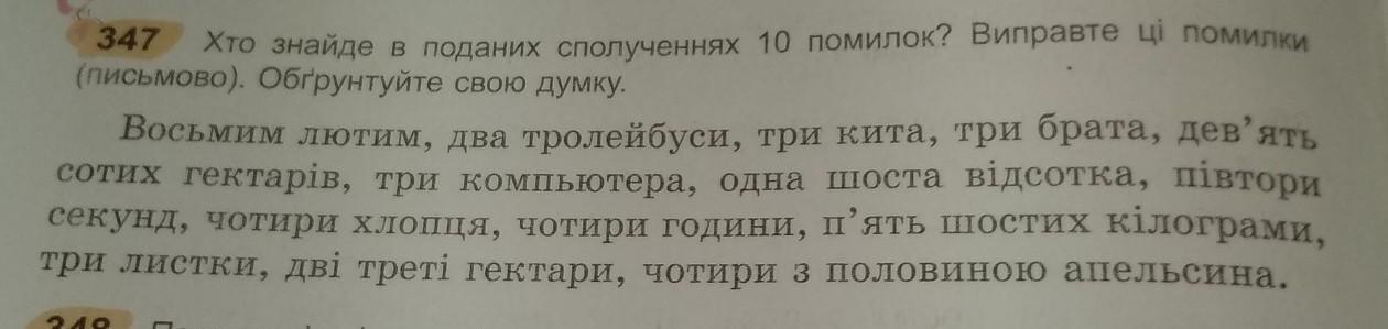 Восьмим лютого, три кити, три брати, дев’ять сотих гектара, три комп’ютери, півтори секунди, чотири хлопці, п’ять шостих кілограма, дві треті гектара, чотири з половиною апельсини.