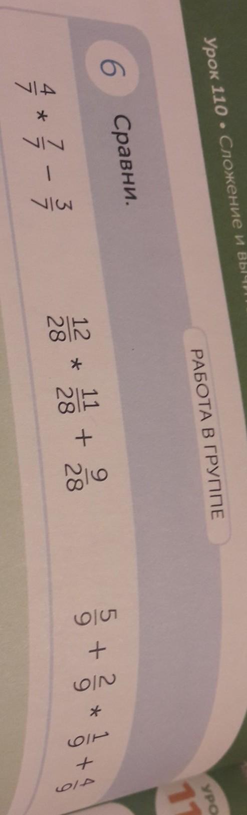 4/7=7/7-3/7. 12/28 меньше 11/28+9/28. 5/9+2/9 больше 1/9+4/9