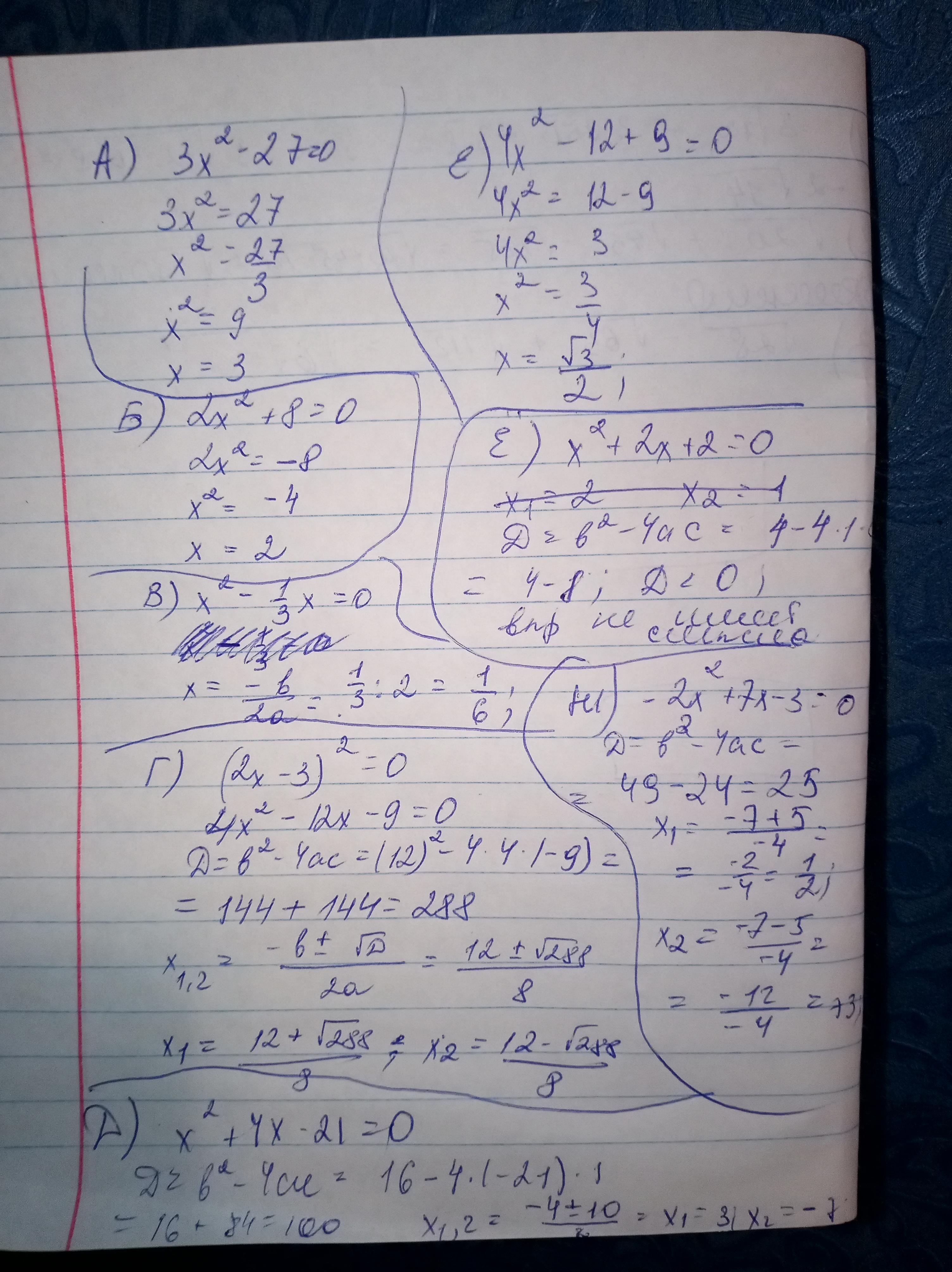 Д) x^2+4x-21=0