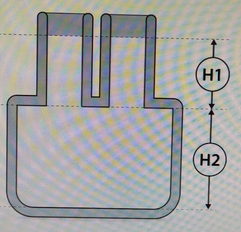 В сосуде находится вода. Чему равно давление на дно сосуда, изображённого на рисунке, если һ1 == 250 мм, һ2 = 300 мм?