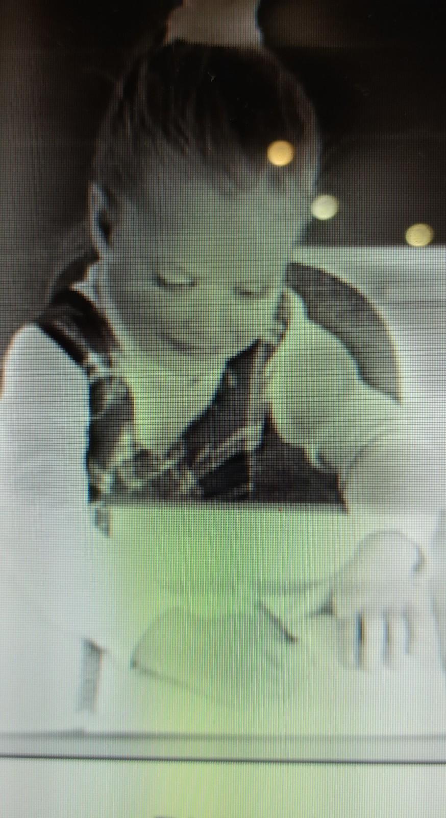 In this picture we can see a girl. Probably she is sitting at school and doing her task. She has a tony tail and she is wearing a school uniform. I think she is 10 years old.