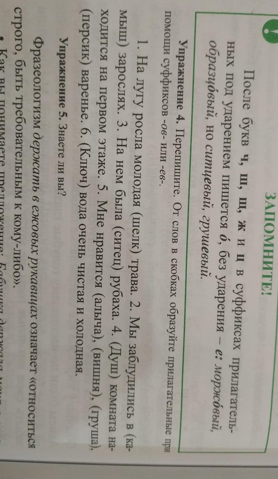 На лугу росла молодая, шёлковая трава. Мы заблудились в камышовых зарослях. На нём была ситцевая рубаха. Душевая комната находится на первом этаже. Мне нравится алычевое, вишнёвое, грушевое, персиковое, варенье. Ключевая вода очень чистая и холодная.