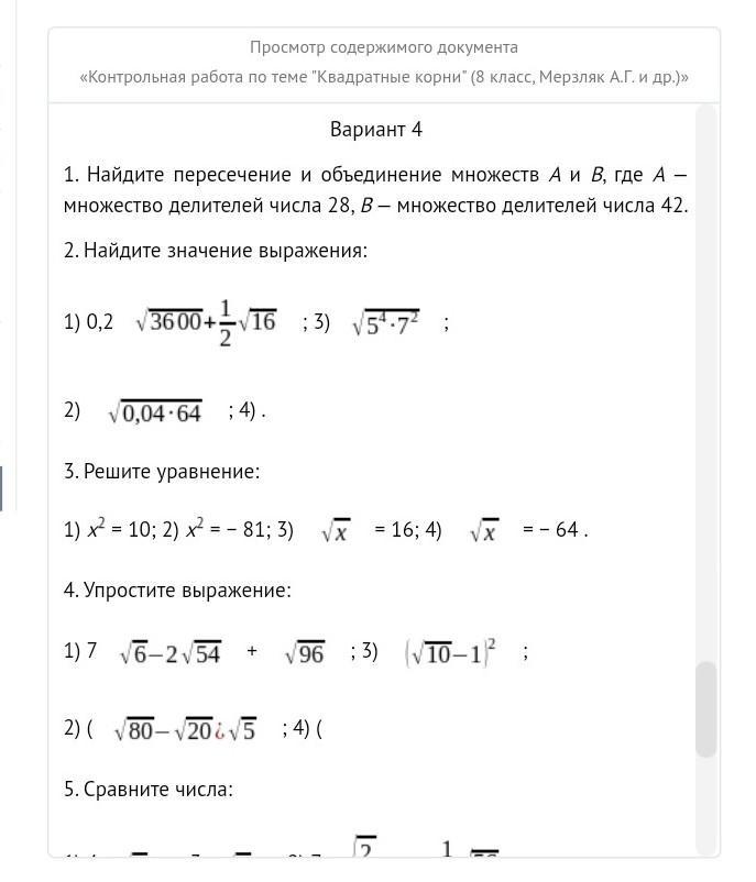Объединение: 1;2;3;4;6;7;14;21;28;42