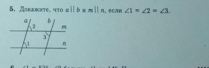 Внимательнейшим образом посмотрев на чертеж, мы увидели, что угол 2 = углу 3 как накрест лежащие при параллельных прямых a и b и секущей m.
