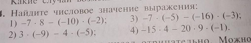 1) -7 * 8 - (-10) * (-2) = -56 - 20 = -76