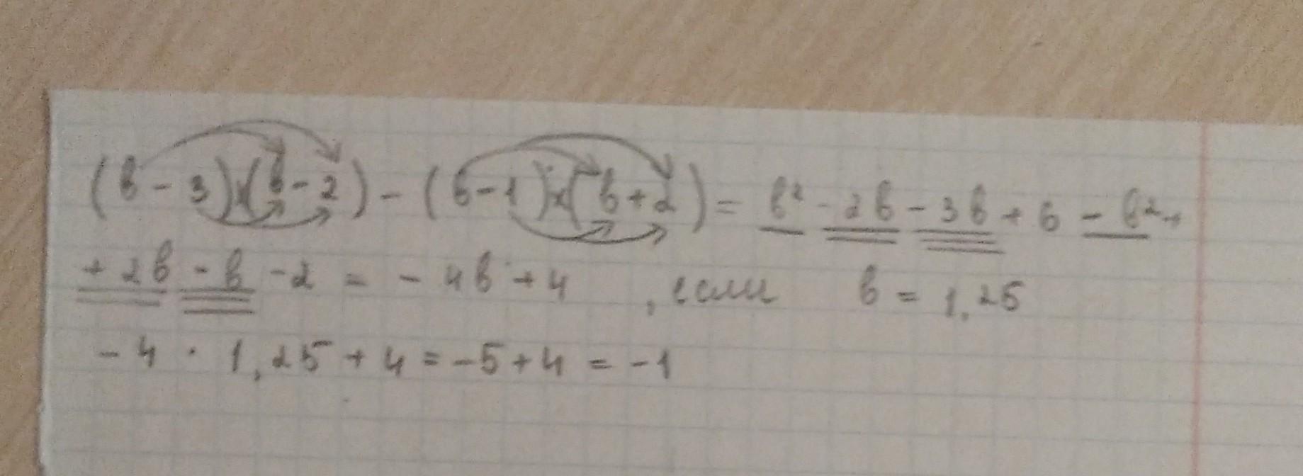 (в -3) (в -2)-(в -1) (в +2)= -1 при значение в=1,25