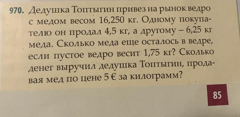 1 действие. Сколько весит ведро с медом после продажи его 2-ум покупателям: