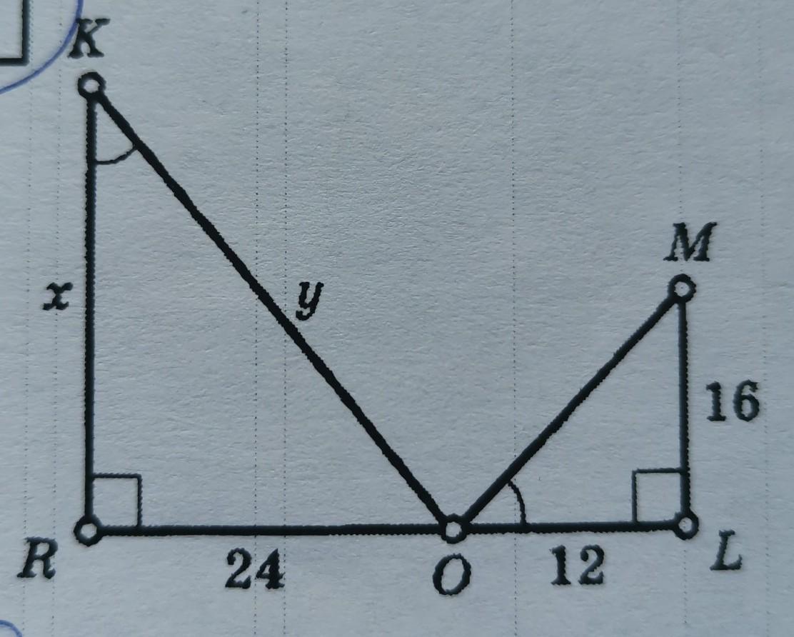 Если два угла одного треугольника соответственно равны двум углам другого, то такие треугольники подобны. Значит ΔOLM подобен ΔKRO, т.к. ∠L=∠R=90 , ∠MOL=∠RKO по условию.