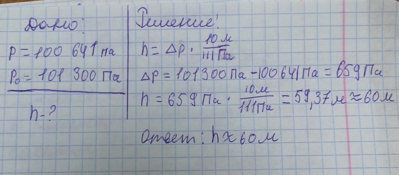 Известно, что подъем на 10 метров уменьшает давление на 111 Паскаль